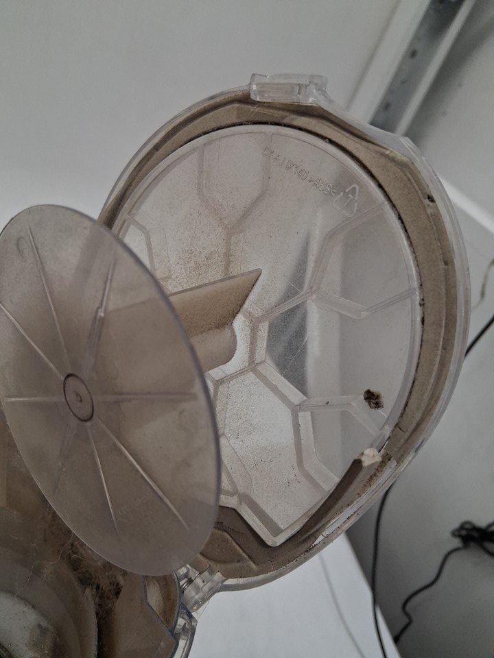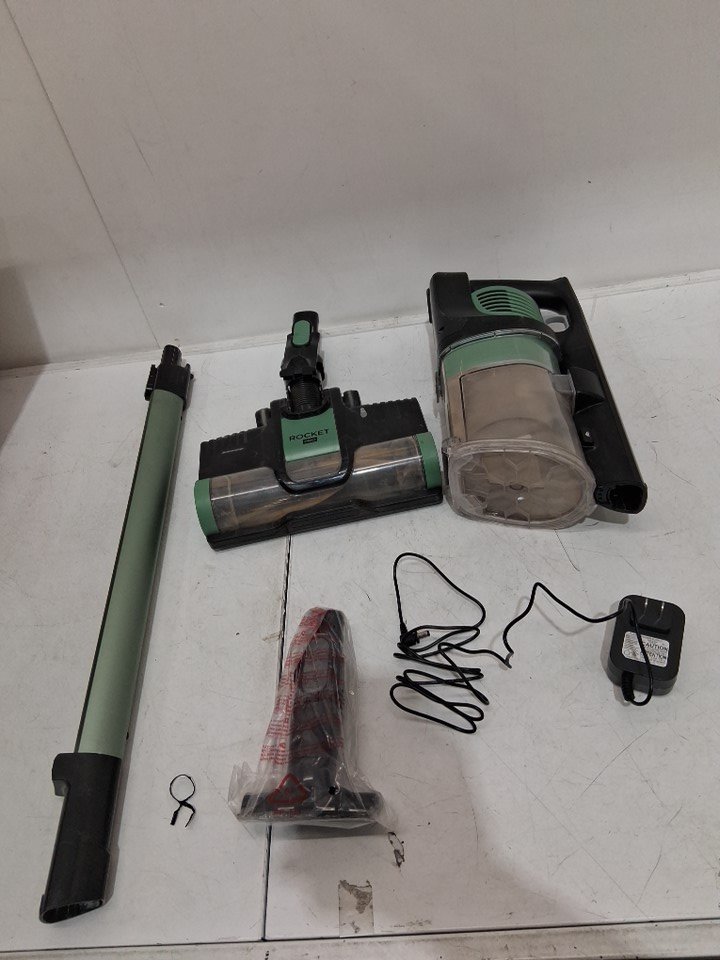 Tested for power. Item has lots of dust/scuffing/scratches and some smell to it from previous use, see photos for reference. Item is missing the nozzle attachment, and the dustbin gasket is damaged. , see photos for reference.