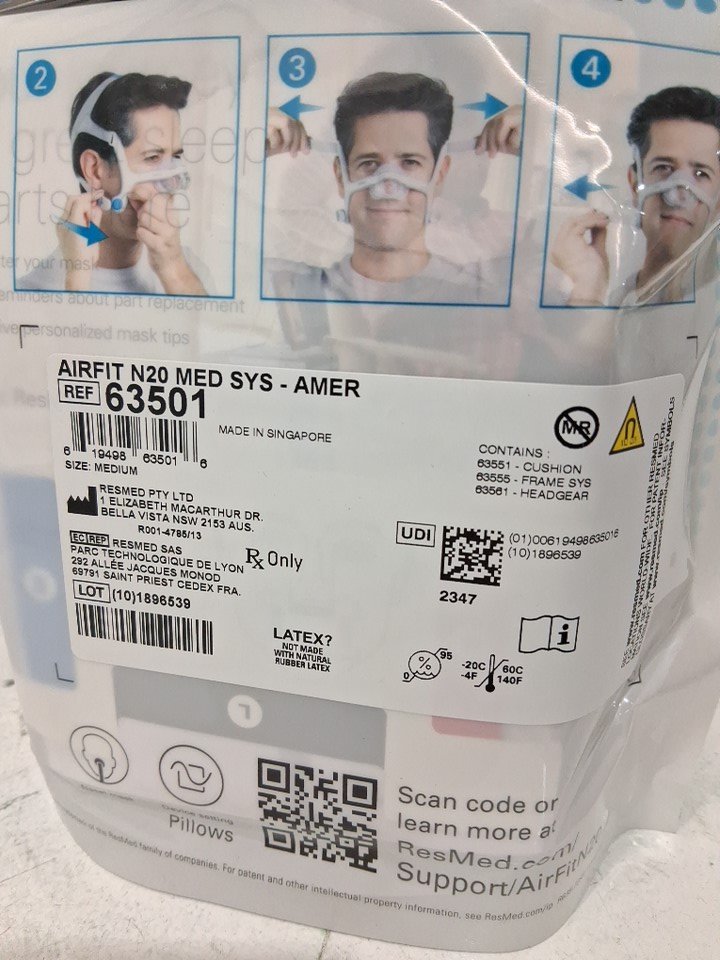 ResMed AirFit N20 cpap Nasal MASK Complete System - medium - white / grey (model: 63501)