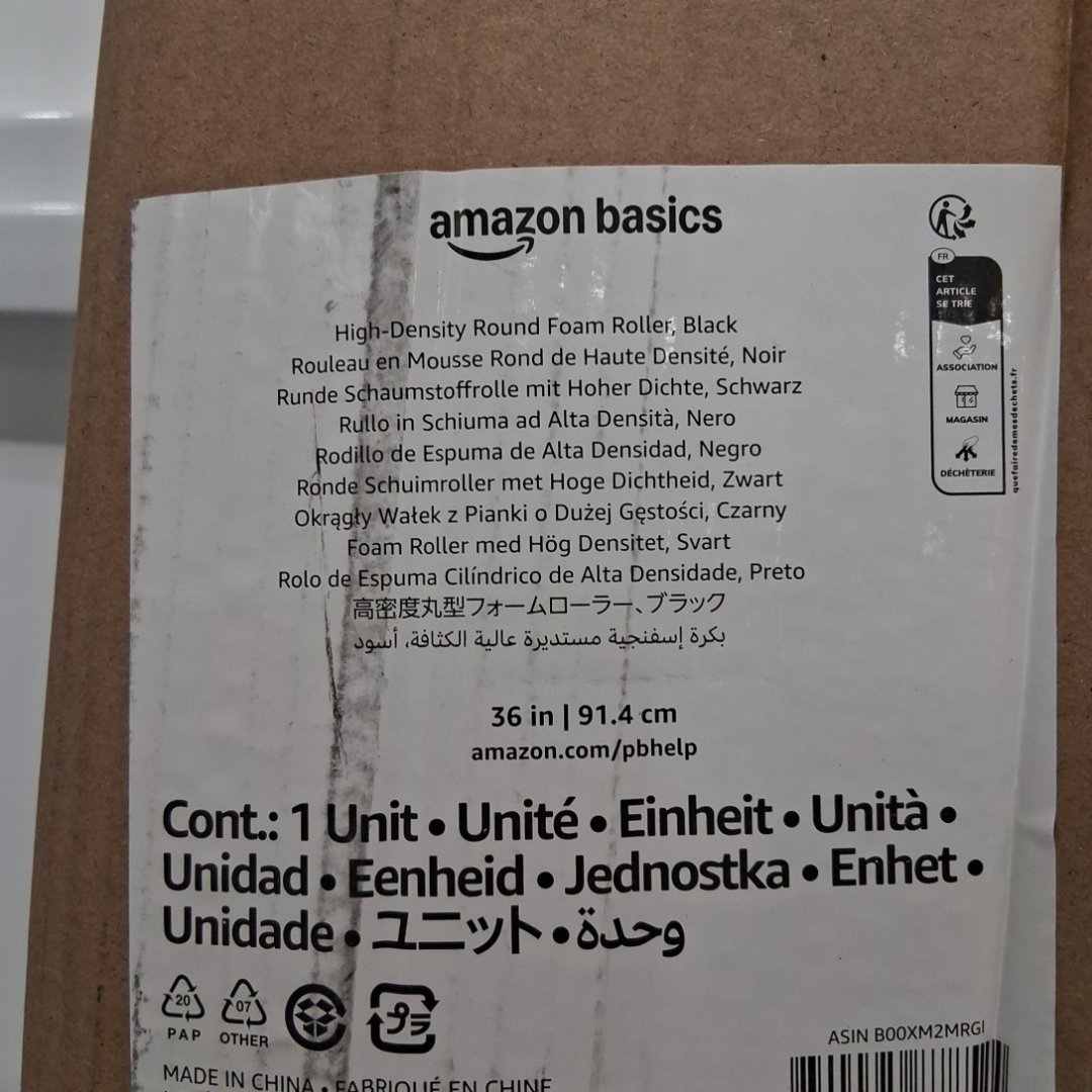 AMAZON BASICS HIGH-DENSITY ROUND FOAM ROLLER FOR YOGA & EXERCISE - 36" - BLACK (MODEL: ‎EPPBK-12-1)