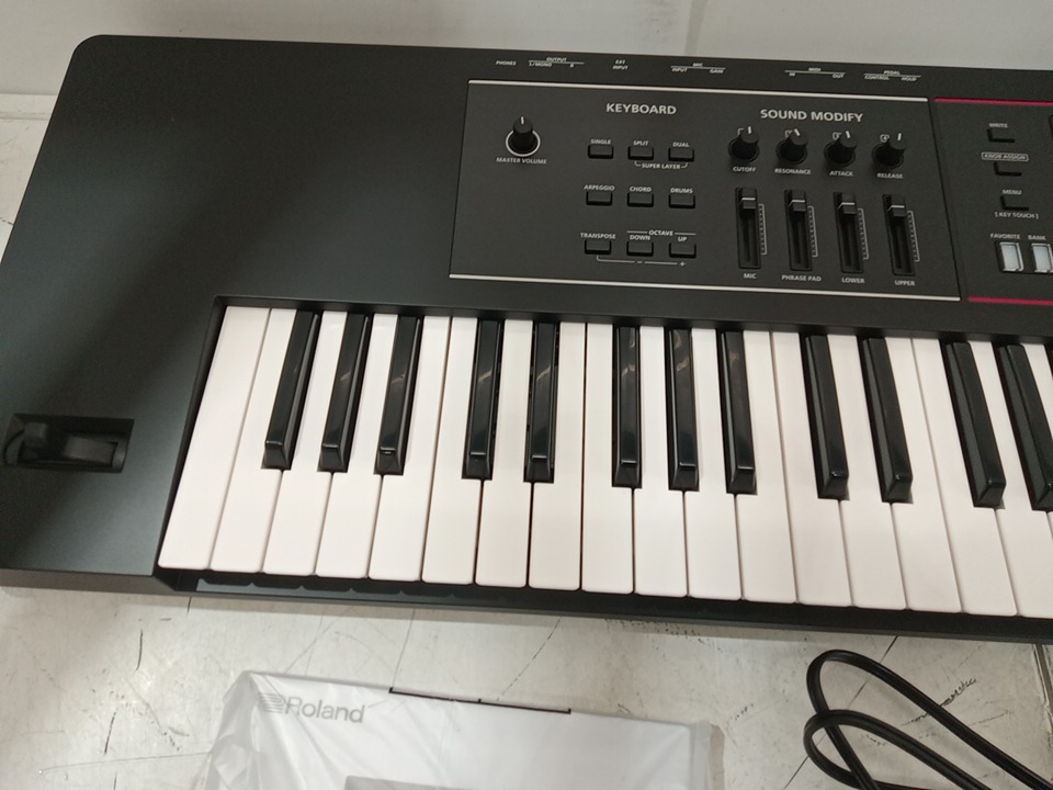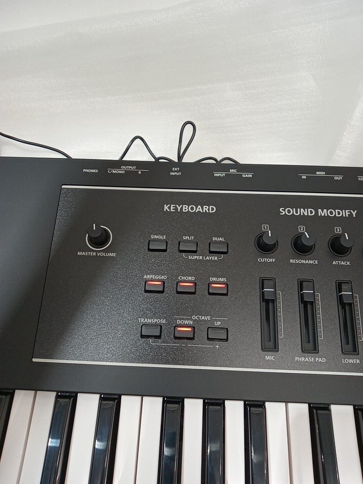 the keyboard turns on and seems to work fine, but we can't test for sound. please see photos