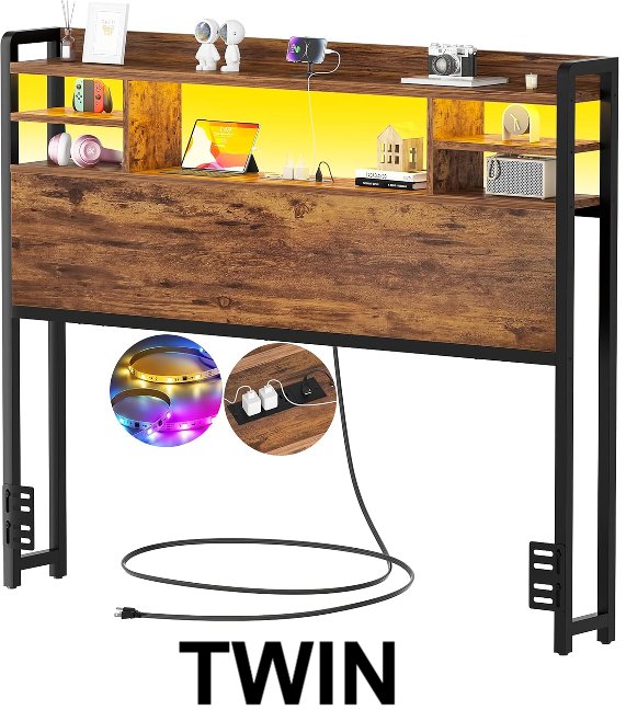 Cyclysio Headboard with Storage SHELVES - TWIN - Brown (model: CSCA-2SFH)