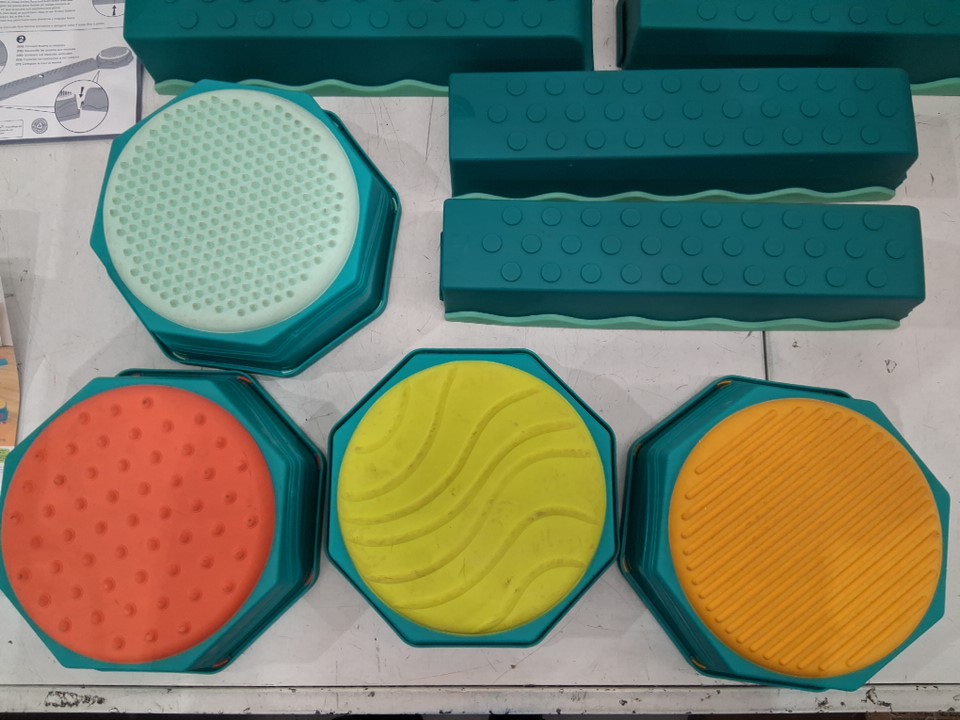 Missing one stepping pad and two balance beams. Remaining show signs of short-term use. (See photos)
