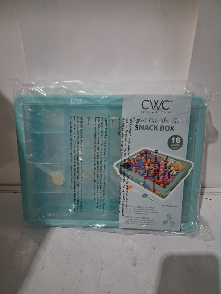 CWC Cook With Color Perfect On The Go Snack Box - 16 Compartments - 12 Food Picks - 8.7" x 2.4" x 11.4" - Green (Model: SUMSNKTG4)