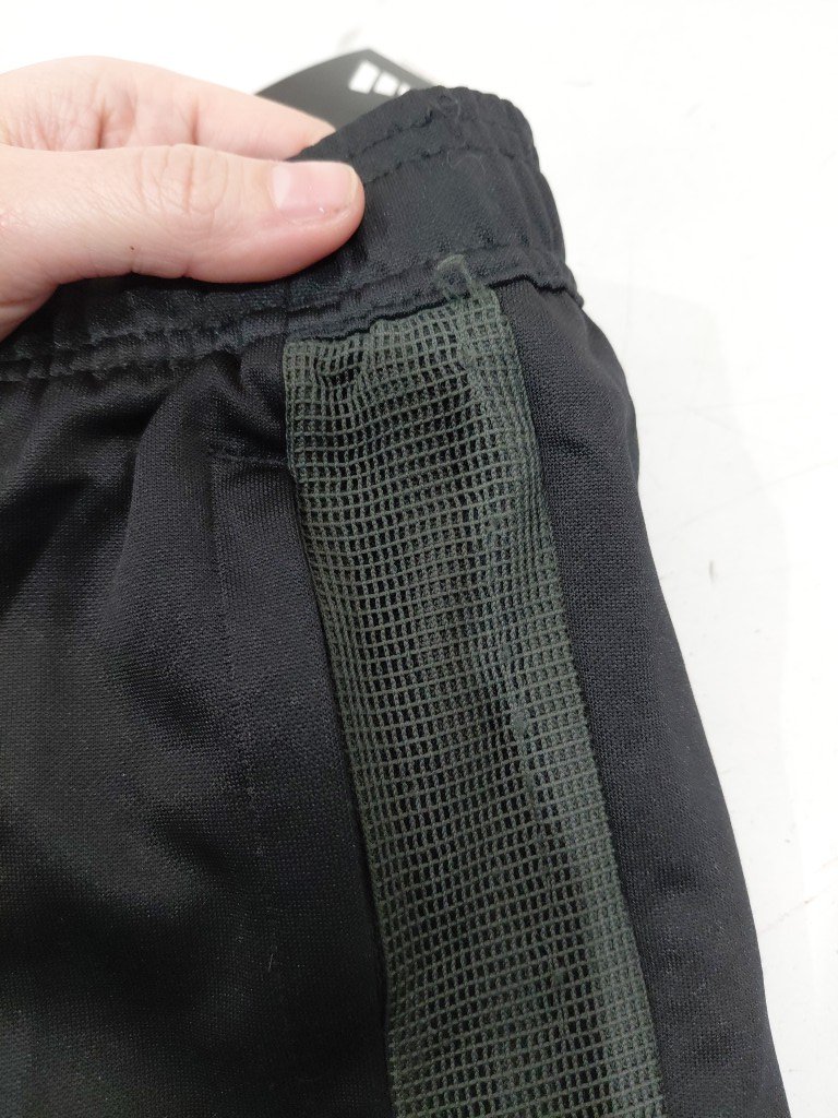 Small stain on pants from shipping without packaging can be washed out, slight "tearing" of side mesh (see photos)