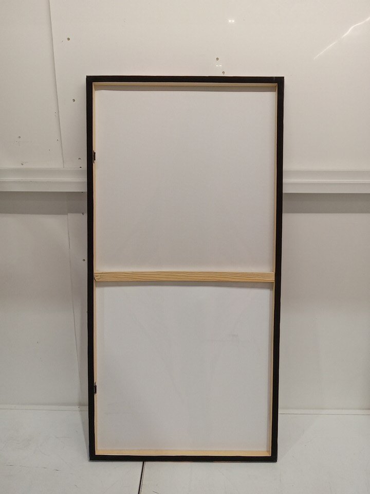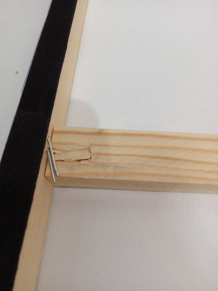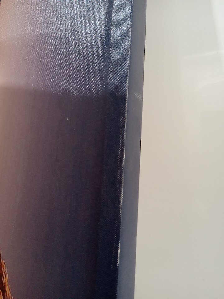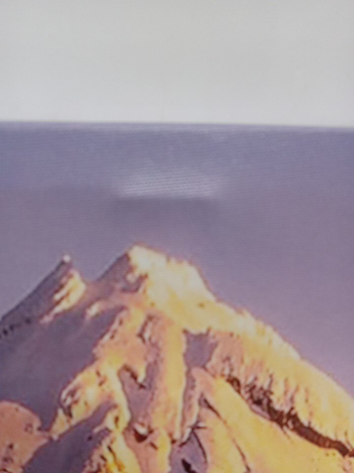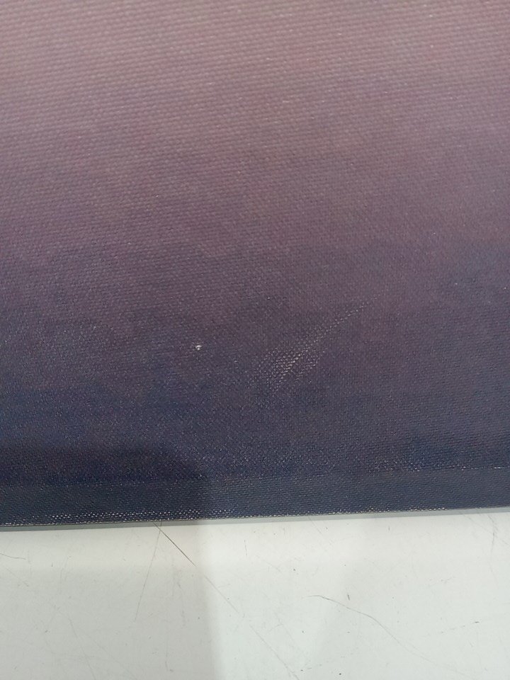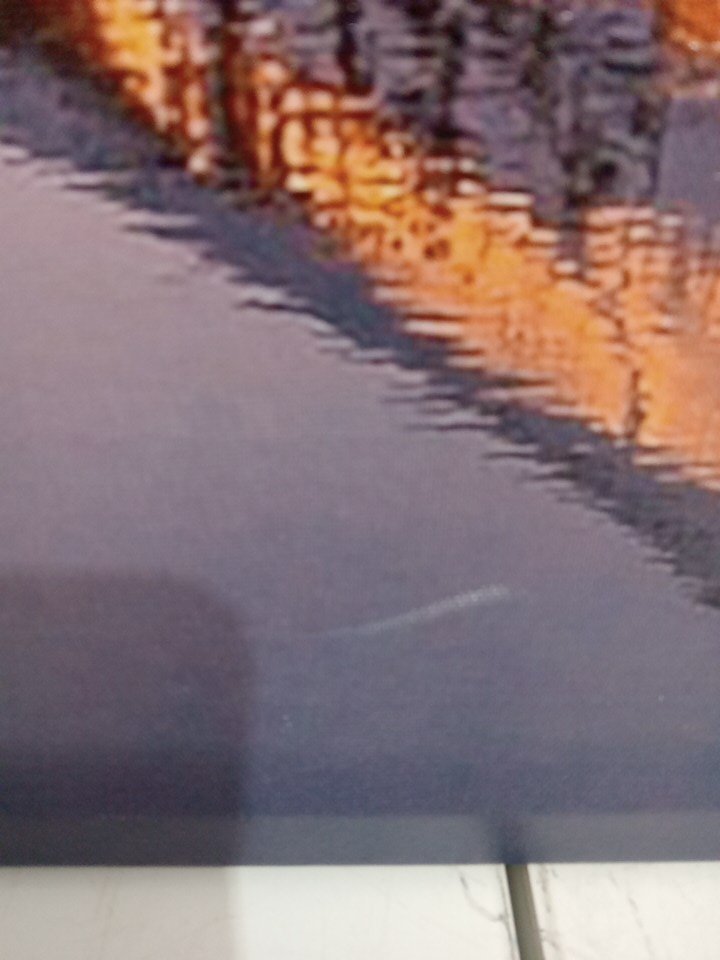 The middle wood support of the frame was slightly damaged as a result from shipping which caused some imperfections on the front of the canvas print. There are also several scuffs/scratches along the edges and a few on the front of the canvas too. See attached photos.