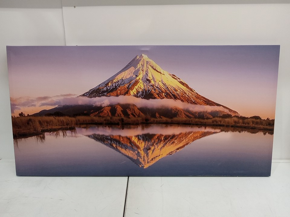 PYABL Natural Scenery Landscape Wall Art Canvas Print - 39.25" x 19.75" - Grey Lake White and Purple Mountain