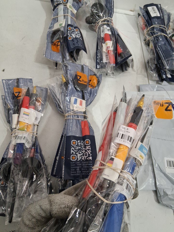 Assorted country and miscellaneous table flags, some opened. 10 per large pile/ pack.