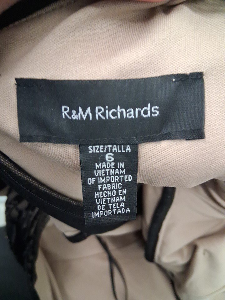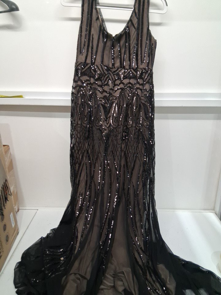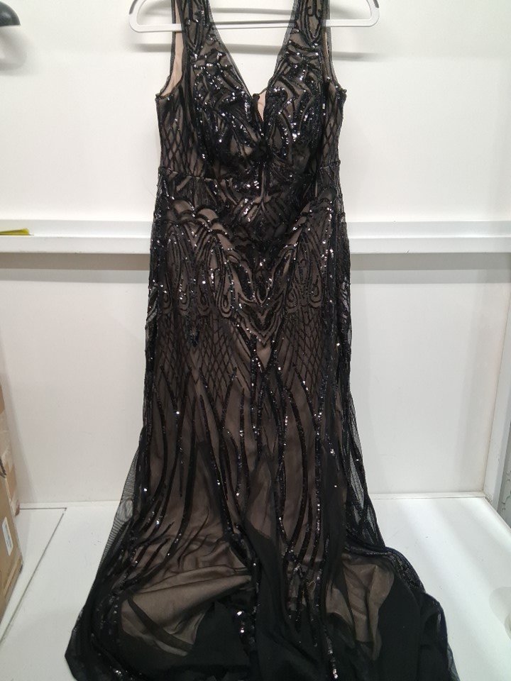Women's R&M Richards v-neck long beaded dress with contrast lining - Size 6 - Black/Nude