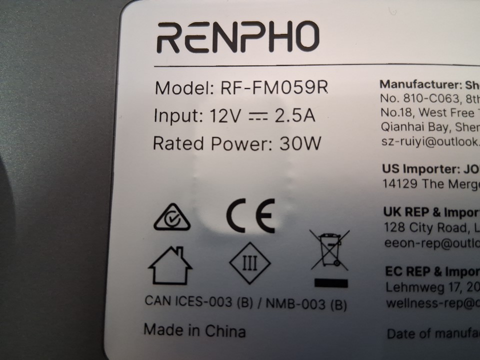 Renpho Shiatsu Deep Kneading Foot Massager and Therapy Compression Machine - Black/Grey (Model: RF-FM059R)