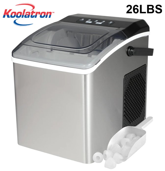koolatron countertop ice maker/machine - 26lbs - stainless/black - (model: KIM26-SS)