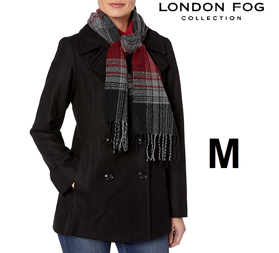 London Fog Women's Double Breasted Peacoat with Scarf Women's Coat - MEDIUM - (Black)