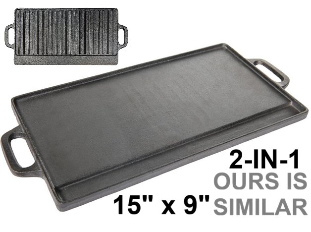 2-IN-1 Reversible Cast Iron Griddle and grill Pan 14.6" x 8.75"
