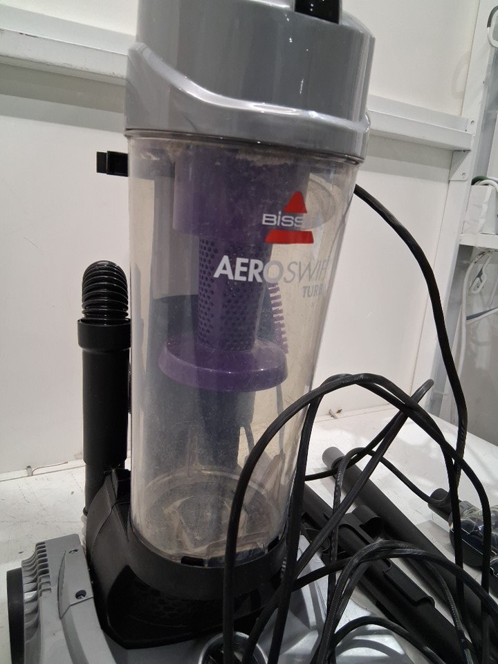 The products dust collector is saturated with some dust residue from previous use. product was tested for power