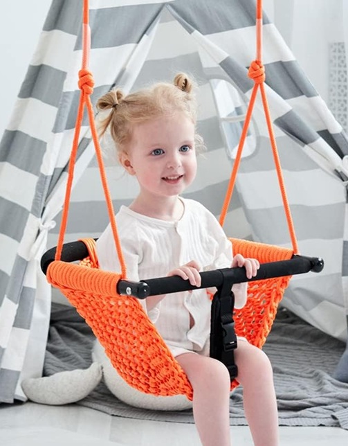 nets Tribe 2 -in- 1 Toddler Swing Seat with Adjustable Ropes AND REMOVABLE GUARDRAIL - UPTO 199KG CAP - ORANGE/BLACK