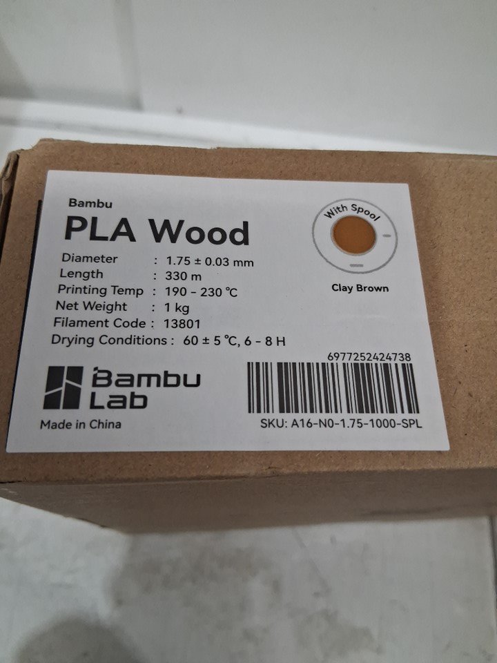 Bambu Lab PLA Wood 3D Printer Filament - 1.75 +/- 0.03MM - 330M - CLAY BROWN (MODEL: 13801)