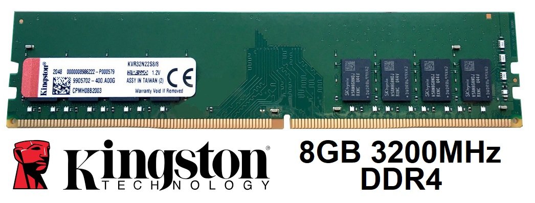 Kingston 8GB 3200MHz DDR4 PC4-25600 Non-ECC CL22 288-Pin DIMM (MODEL : KVR32N22S8/8)