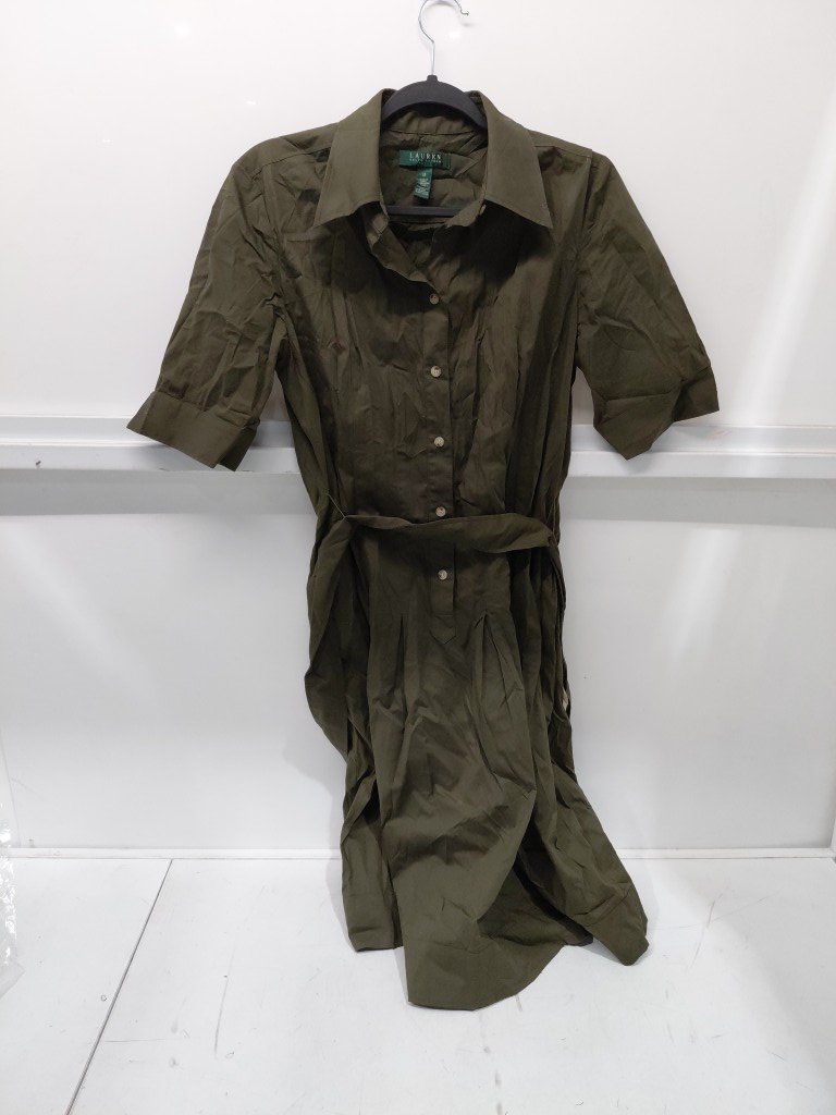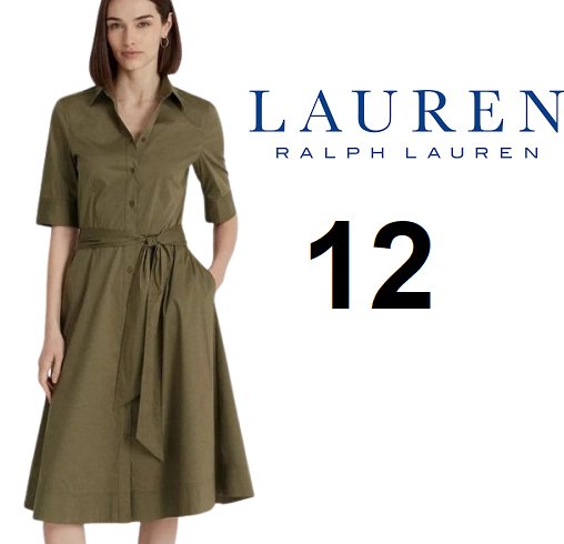 Lauren ralph Lauren belted cotton-blend shirtdress with belt - 12 - olive green