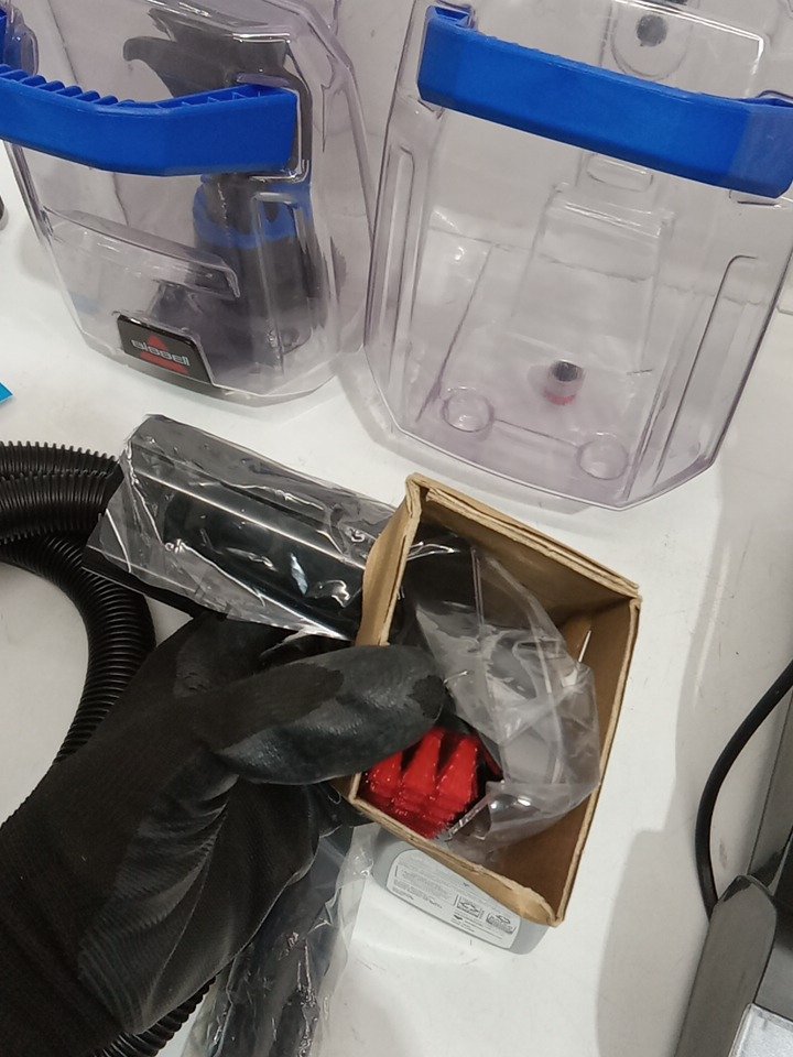 signs of previous use throughout machine including inside the reservoirs & on the main vacuum head. Tested for power.