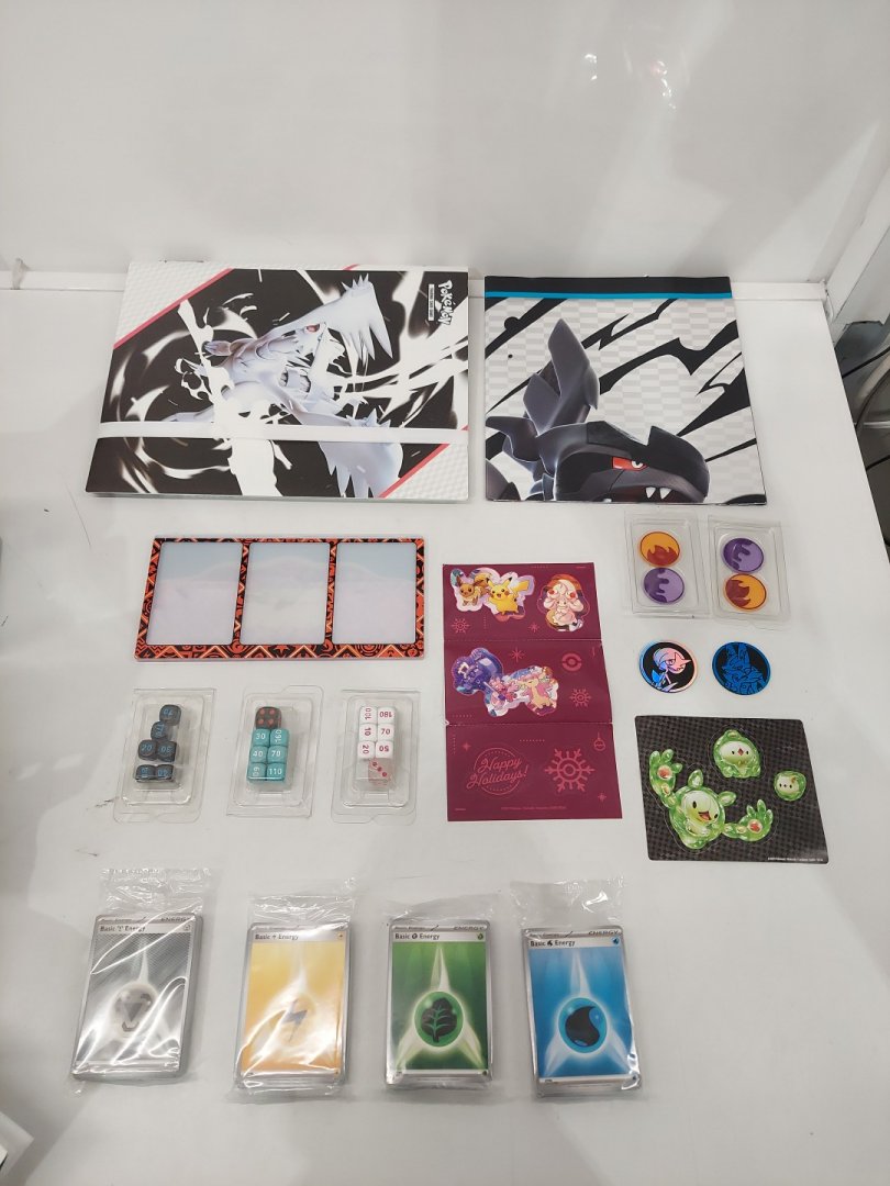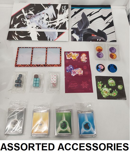 16 ASSORTED POKEMON TCG ACCESSORIES INCLUDING BINDER, POSTER, DICE, STICKERS & MORE