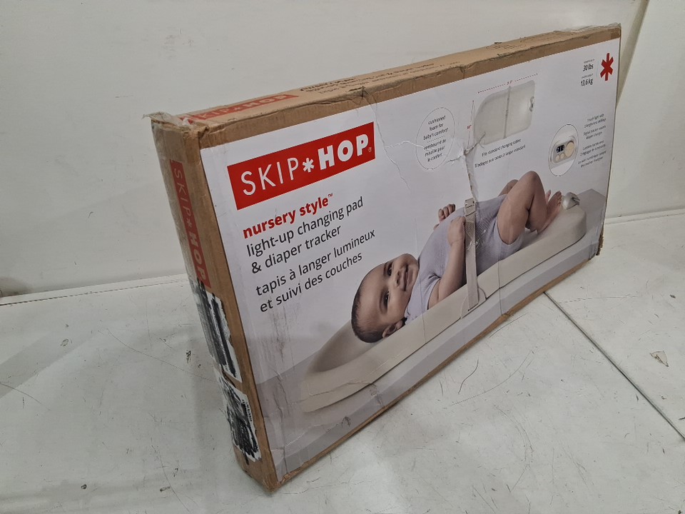 Skip Hop Baby Changing Pad Nursery Style Light-Up Wipeable and Contoured with Cushioned Foam - 31" x 16" - 30LB MAX - Oat/White (Model: ‎Light-Up Oat)