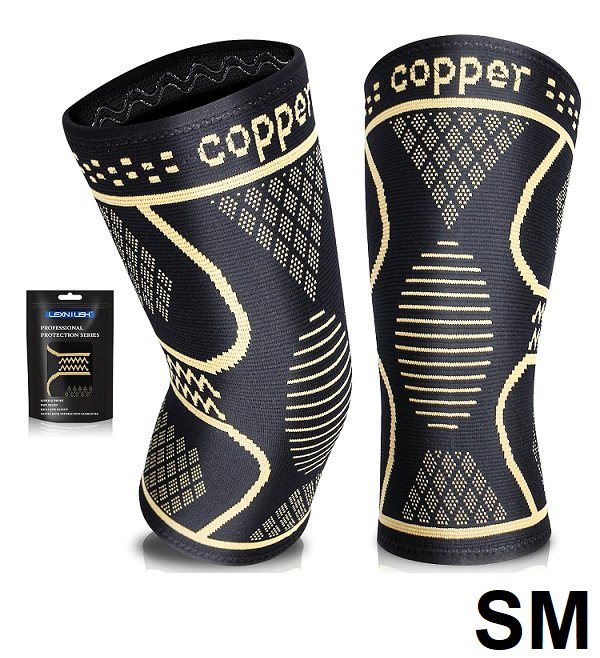 adult lusenone professional copper compression knee braces - small - black/gold