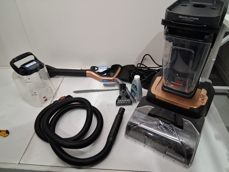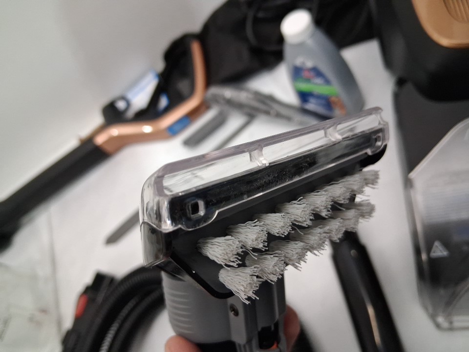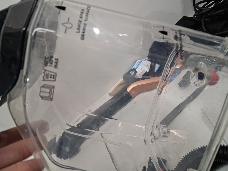 Missing one of the cleaning solution bottles- The item has some dirt/dust in tanks and on head from prior light use (see photos)