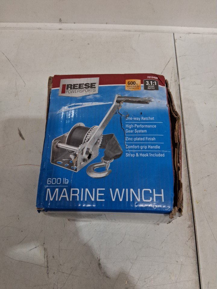 REESE MARINE WINCH with 15 FT STRAP - 600lb capacity (model:7019400)