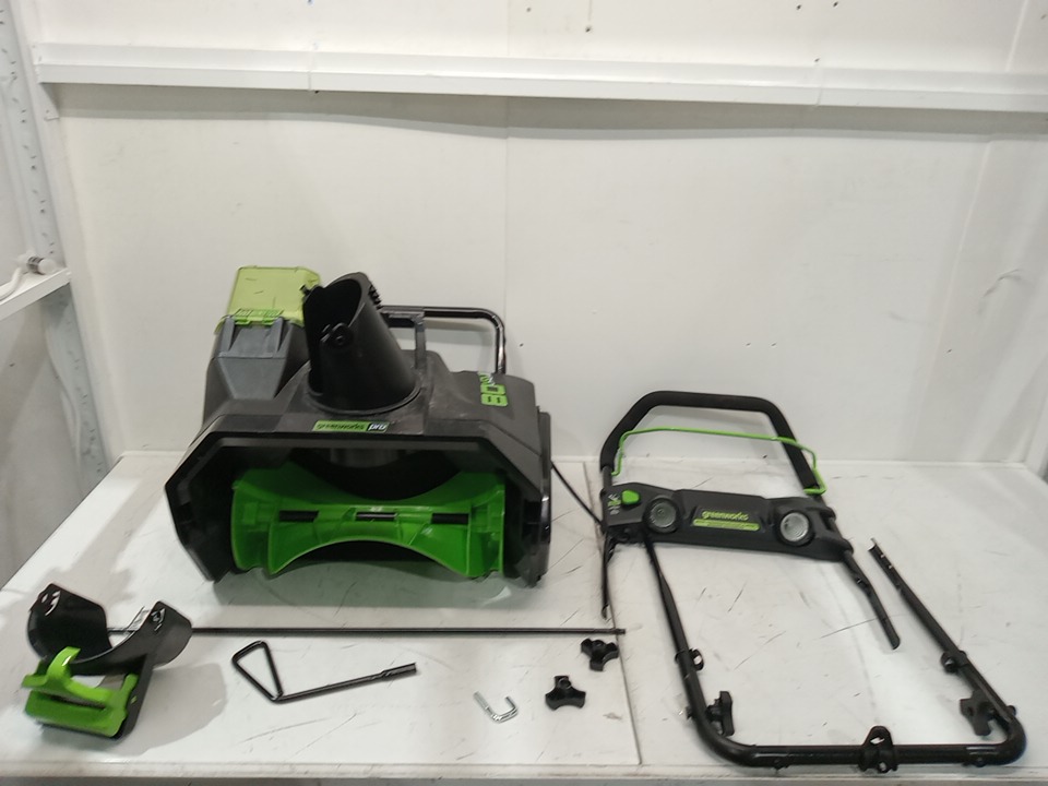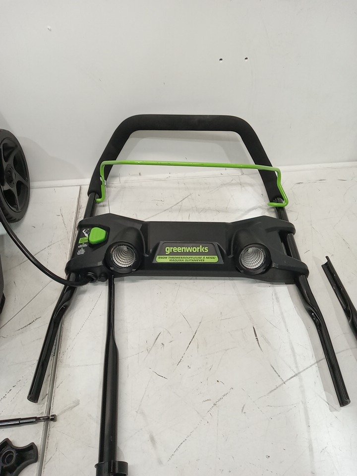 the snow thrower is a bit dirty and is scratched, but it seems to be in good shape. we also can not test it. please see photos