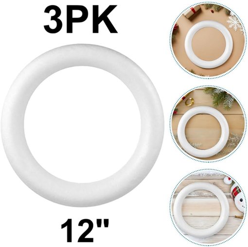 3PK DECHOUS 2" Thick Polystyrene Foam Wreaths - 12" - White