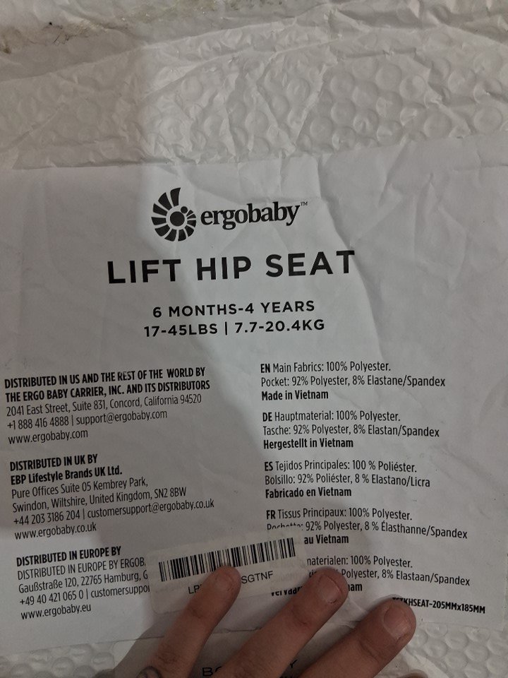 ergobaby Lift Hip Seat Baby Carrier - 17 to 45LB max/6 to 48 months max - grey