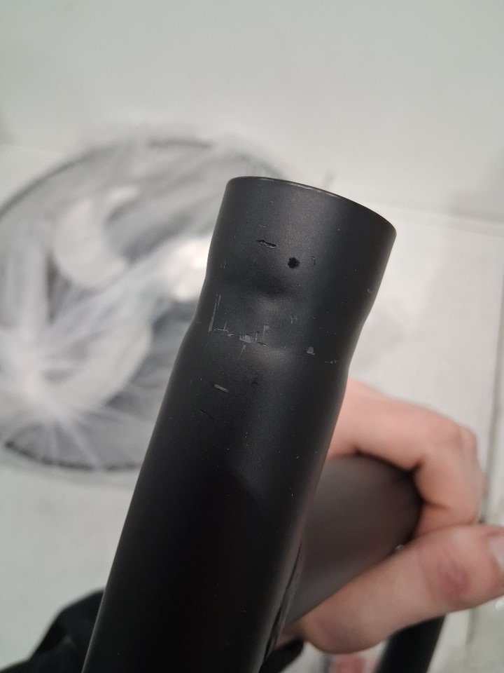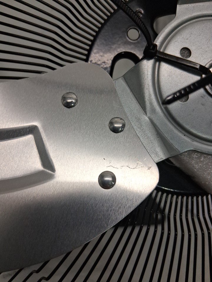 There are some paint chips/scratch marks on most of the pieces from shipping. This will not affect the function of the fan. Tested for power.