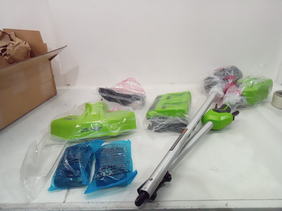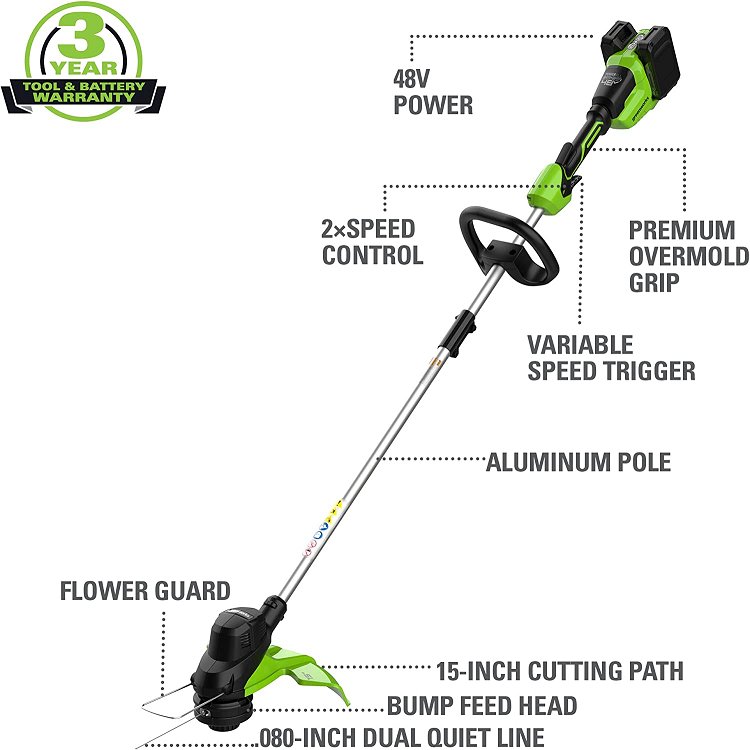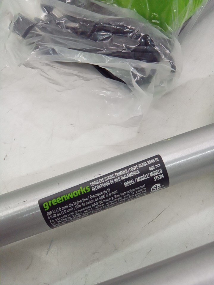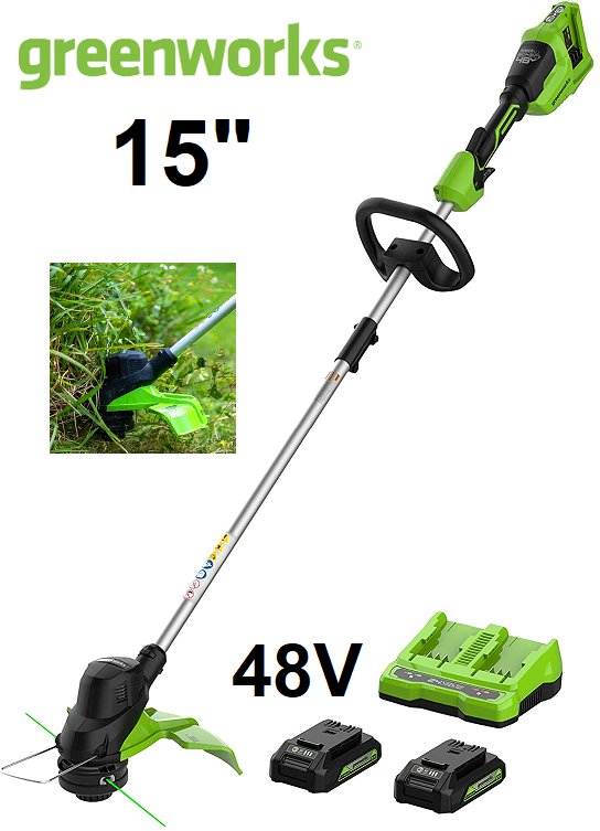 GREENWORKS 15" TORQDRIVE CORDLESS STRING TRIMMER, 48V (2 x 24V 2AH USB BATTERIES)- GREEN- (MODEL:STE304/ST48B2210)