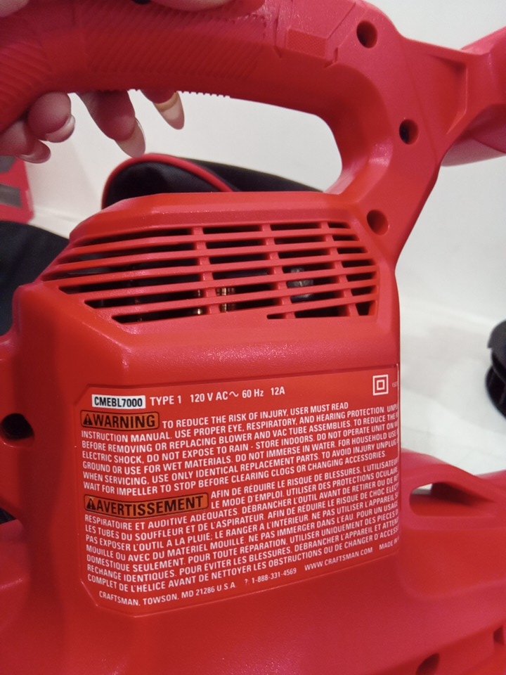 CRAFTSMAN 3-in-1 CORDED LEAF BLOWER/VACUUM/MULCHER - 12-AMP - RED/BLACK (MODEL: CMEBL7000)