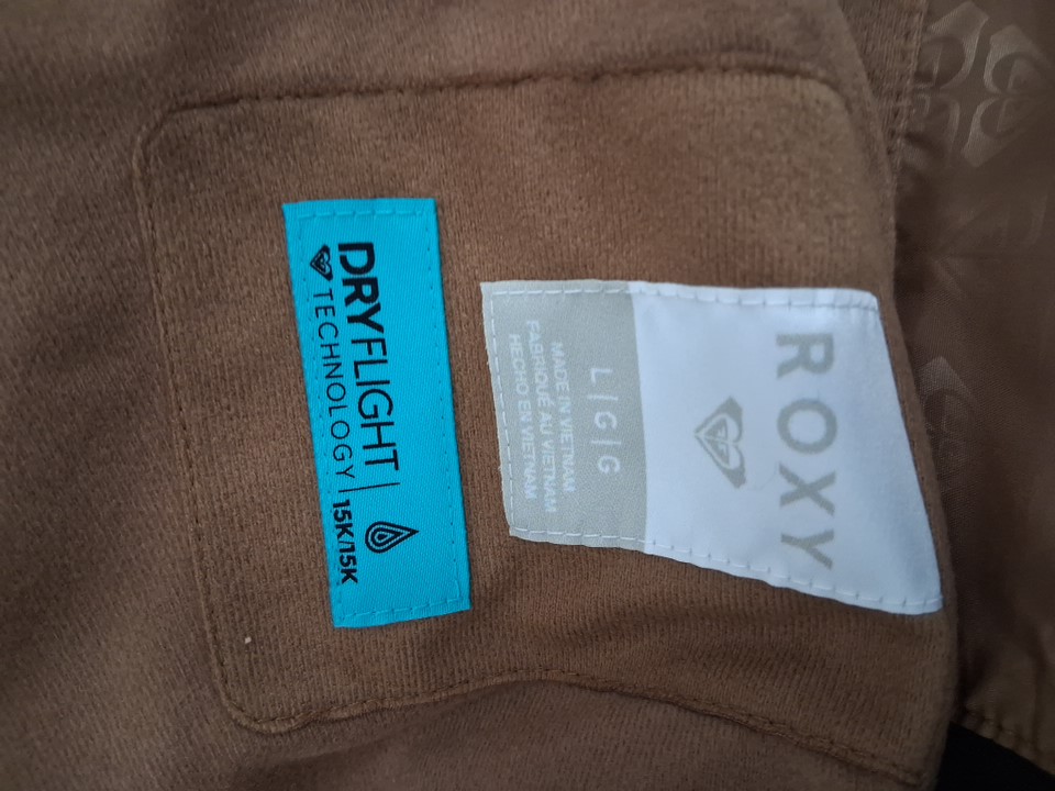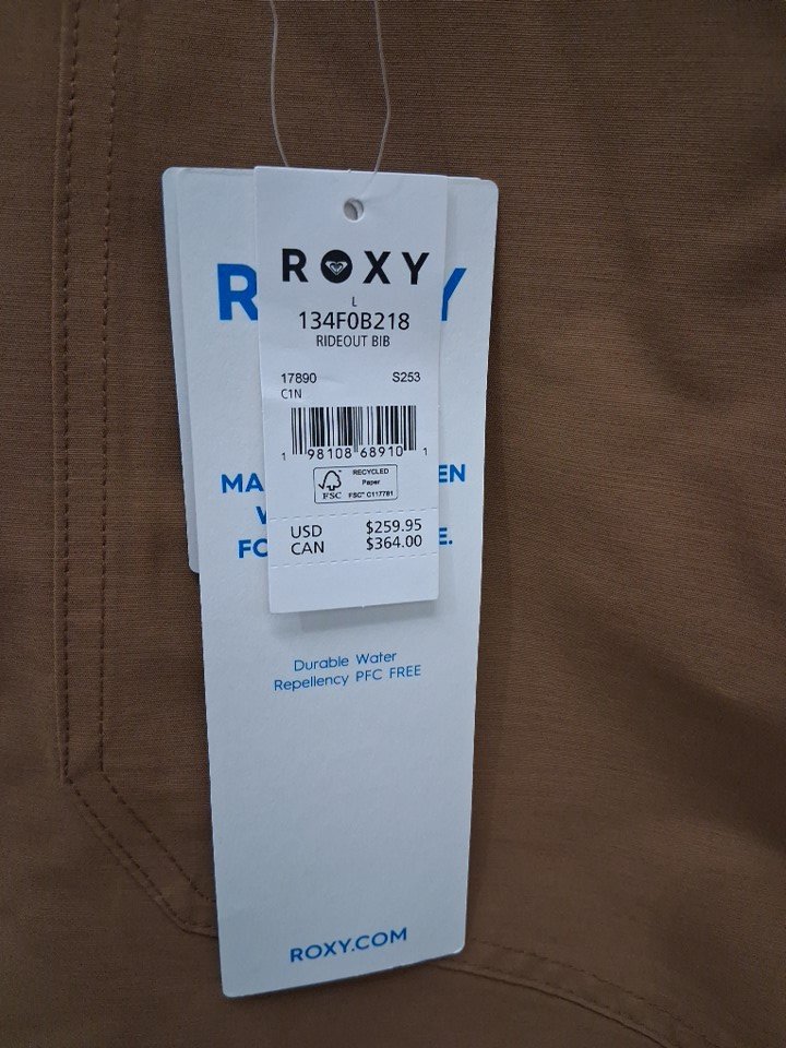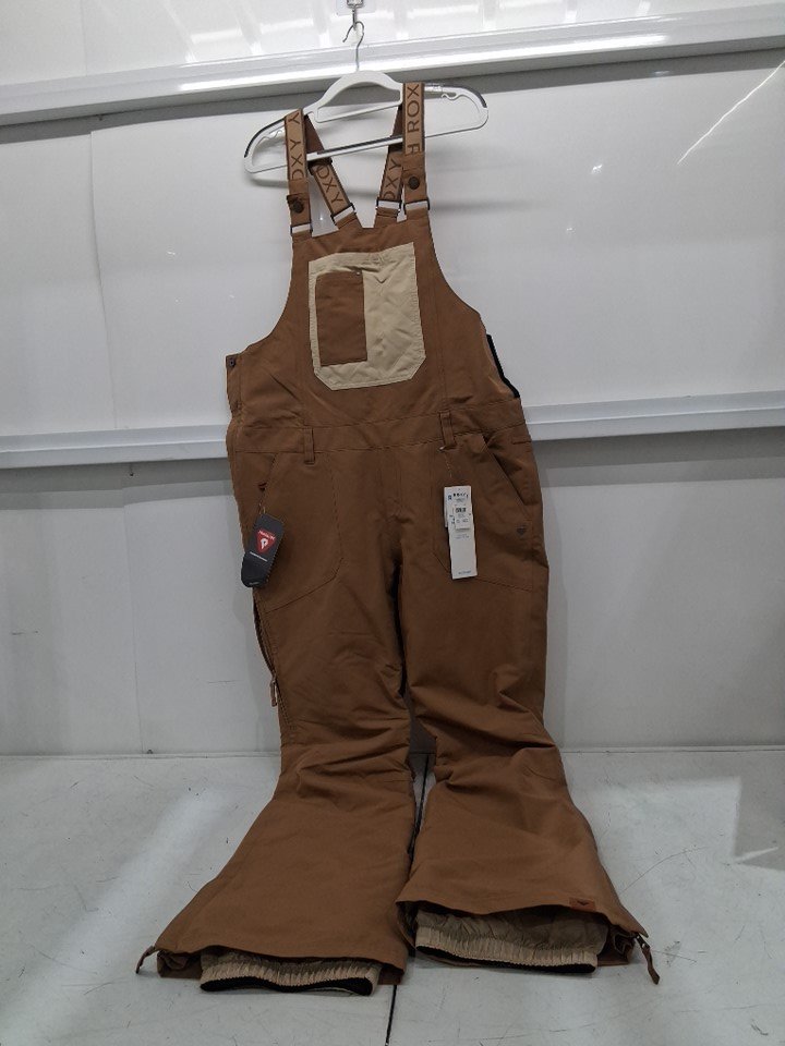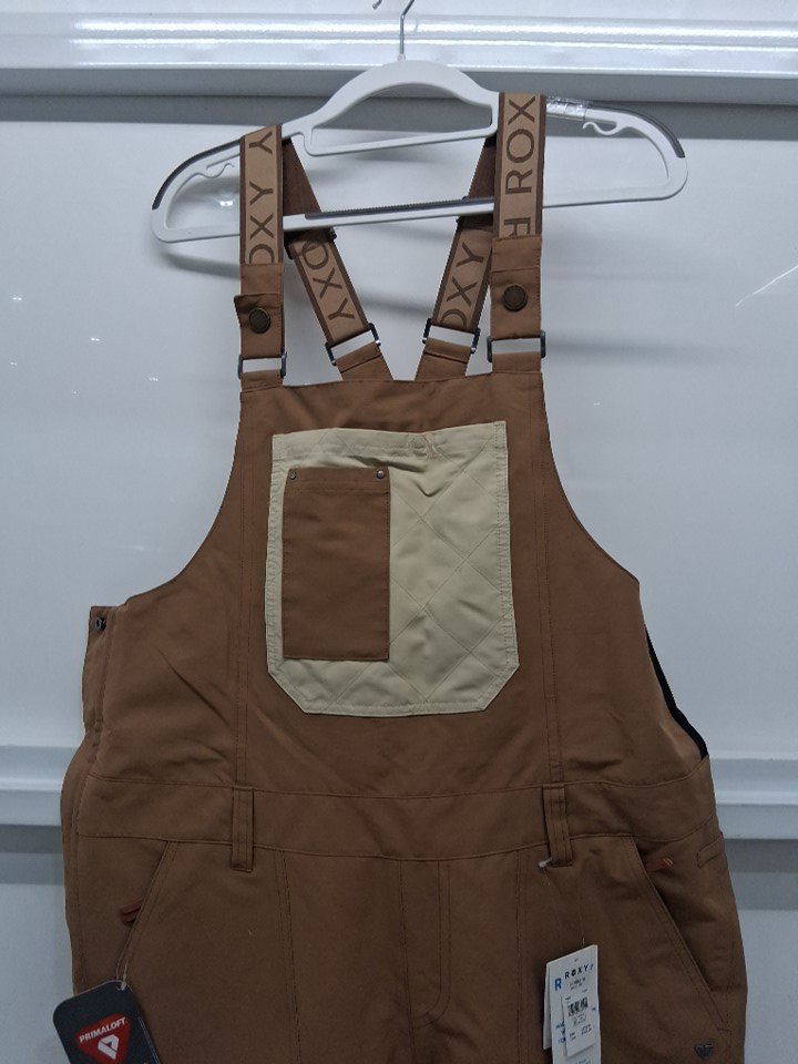 Women's roxy rideout insulated bib snow suit overalls - large - coconut/beige/brown