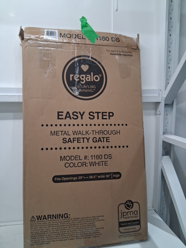 REGALO EASY-STEP METAL WALK-THROUGH SAFETY GATE - 30" x 29'' to 38.5'' - WHITE - (MODEL: 1160DS)