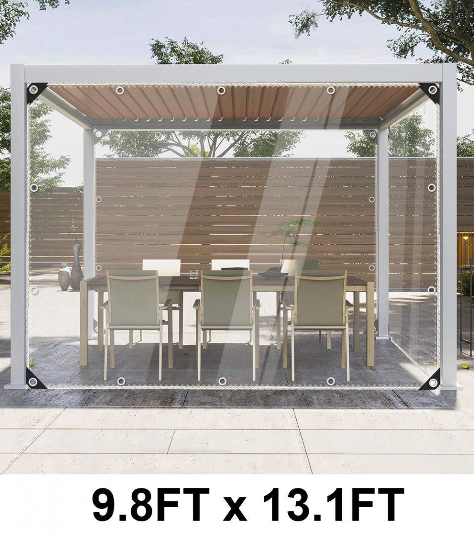 Heavy Duty Waterproof PVC Vinyl Tarpaulin with Grommets, Ropes, Reinforced Edge, 9.8ft X 13.1FT - clear