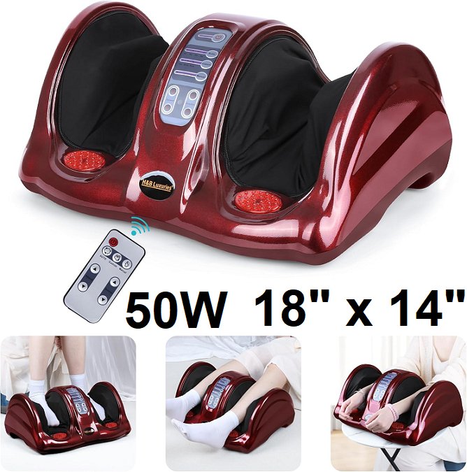 H&B Luxuries Shiatsu Kneading Rolling Foot Massager - 18" x 14" - 50W - 4 massage intensities - red/black (model: 9902s)