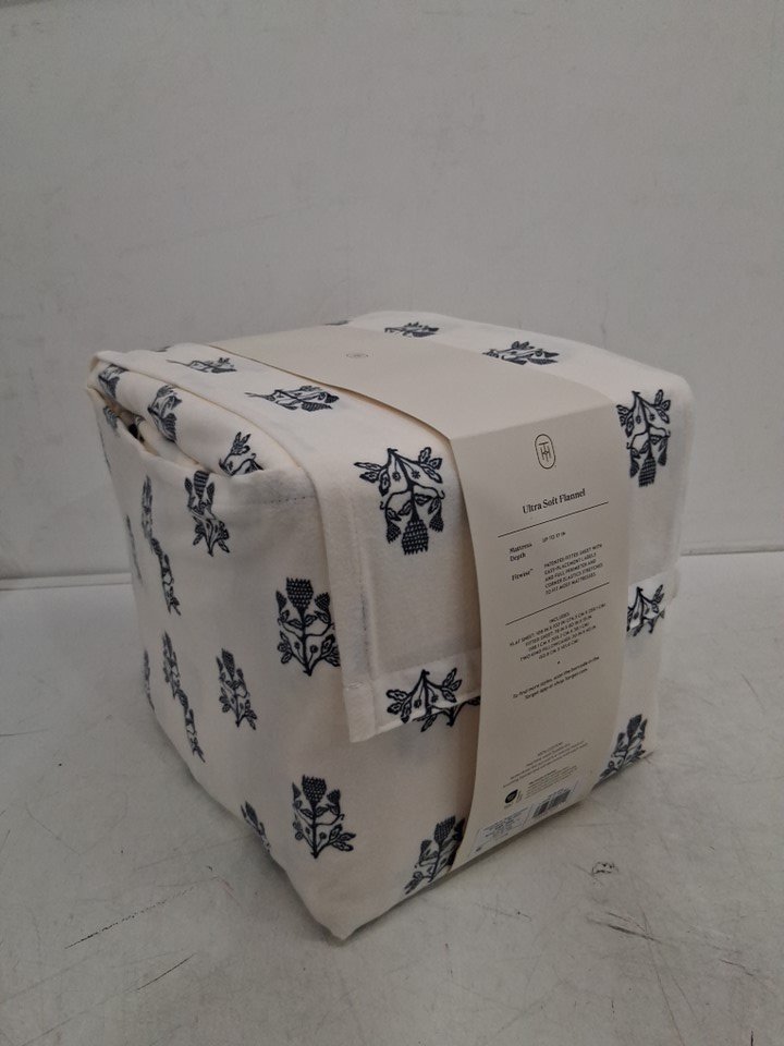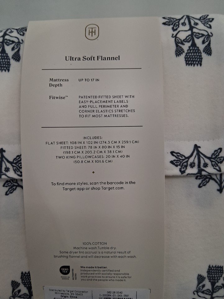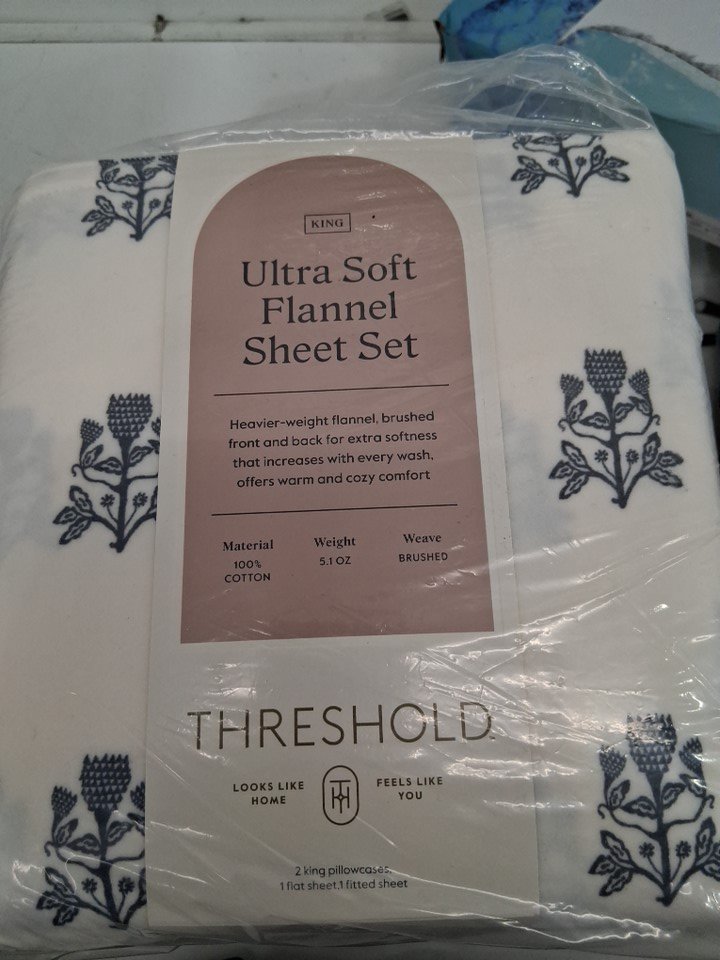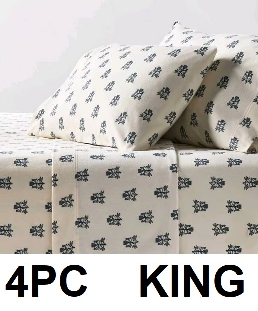 4PC threshold Ultra Soft Flannel Sheet Set - KING - Blue Woodblock