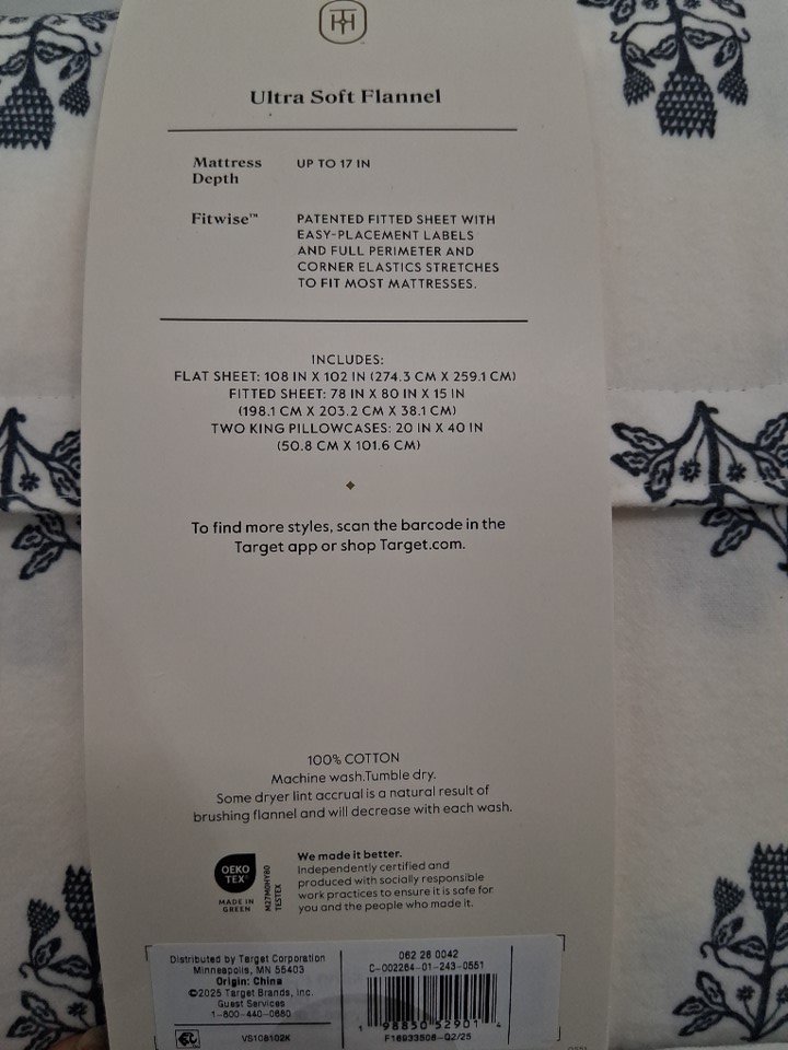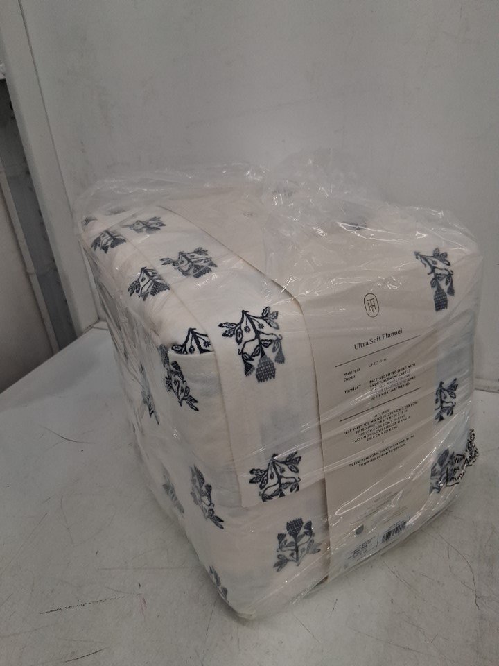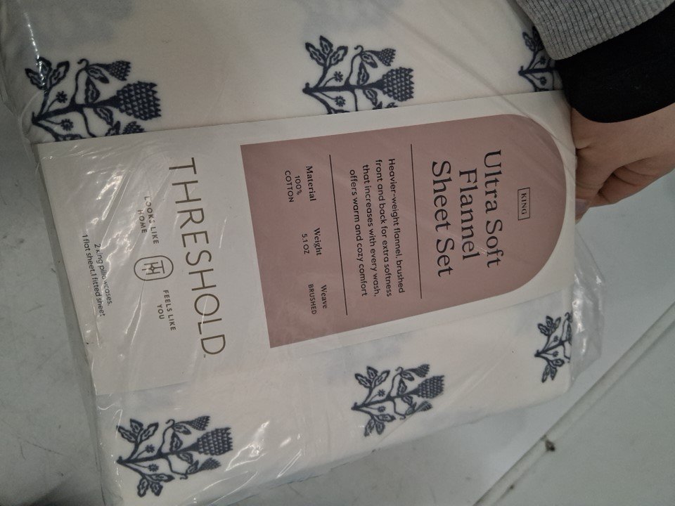 4PC threshold Ultra Soft Flannel Sheet Set - KING - Blue Woodblock