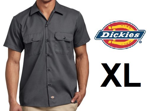 men's dickies slim fit flex twill work shirt - extra large - dark grey