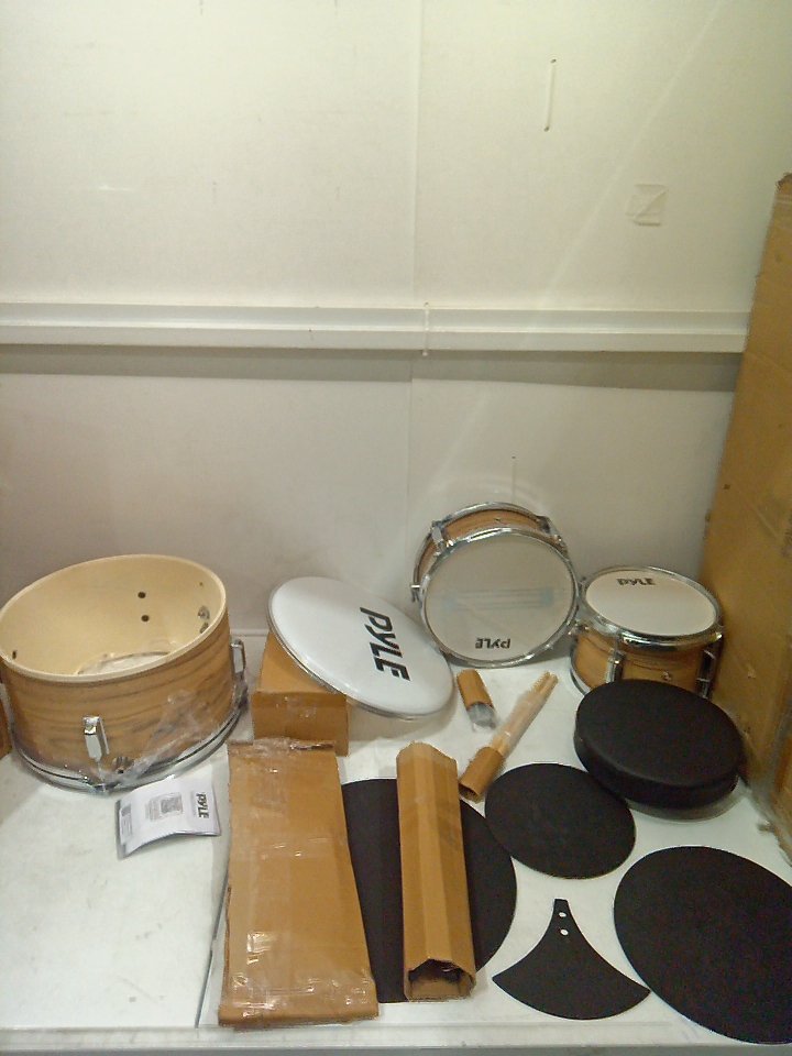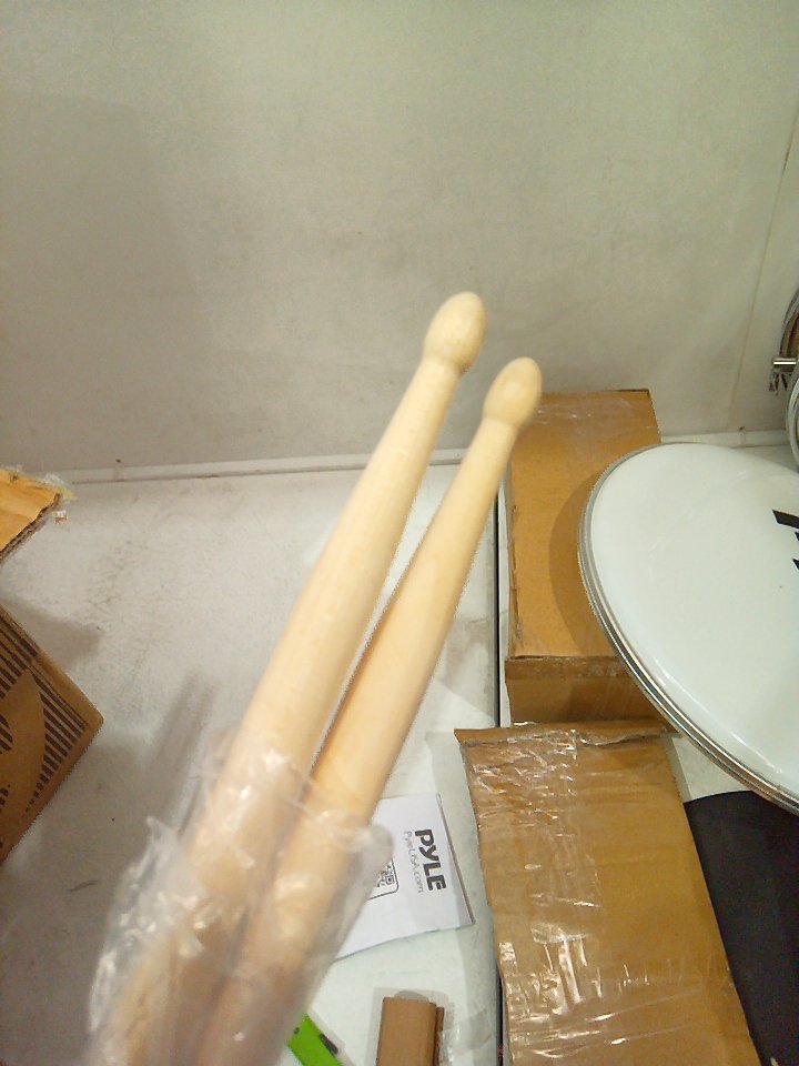 There are some light markings on the drum sticks and the bottom of the feet for some pieces. Ours does not include the hi-hat. (SEE PHOTOS)