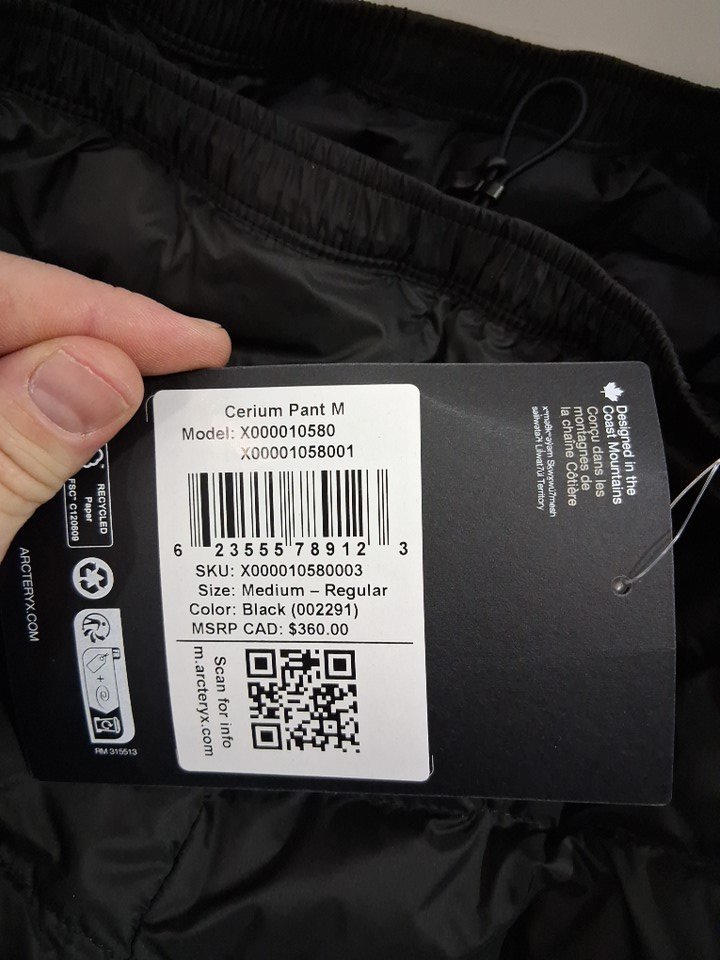 men's Arc'teryx light Pull-On Waistband down-filled top layer Cerium Pants - medium - black (style: x000010580 black