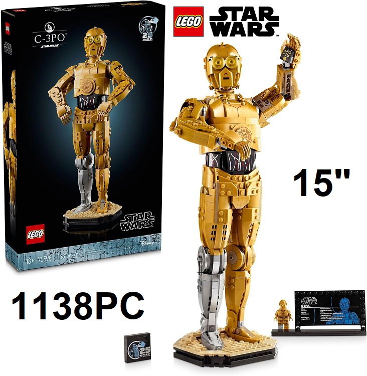 1138PC Lego Star Wars C-3PO kit - 15" - gold (model: 75398)