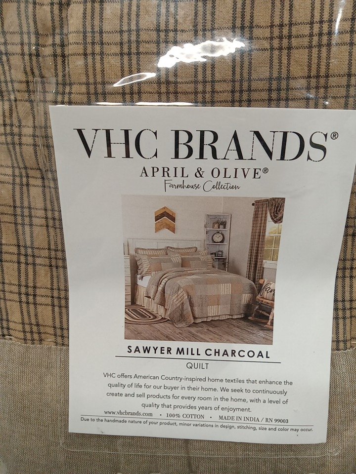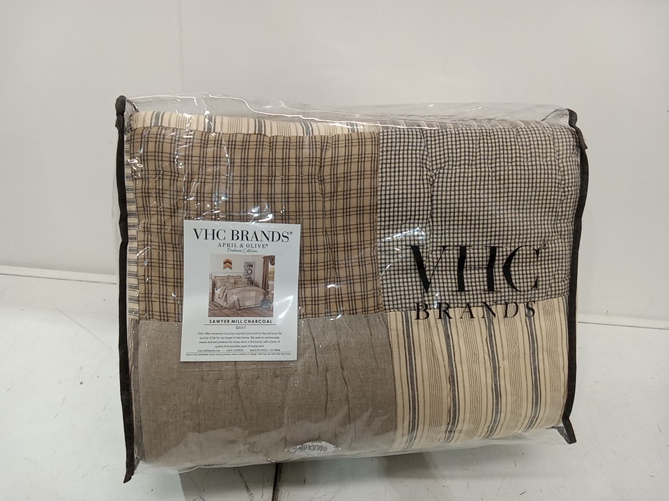 VHC Brands Farmhouse Bedding Sawyer Mill Quilt - King (105"x95") - Charcoal Grey (MODEL:38035)