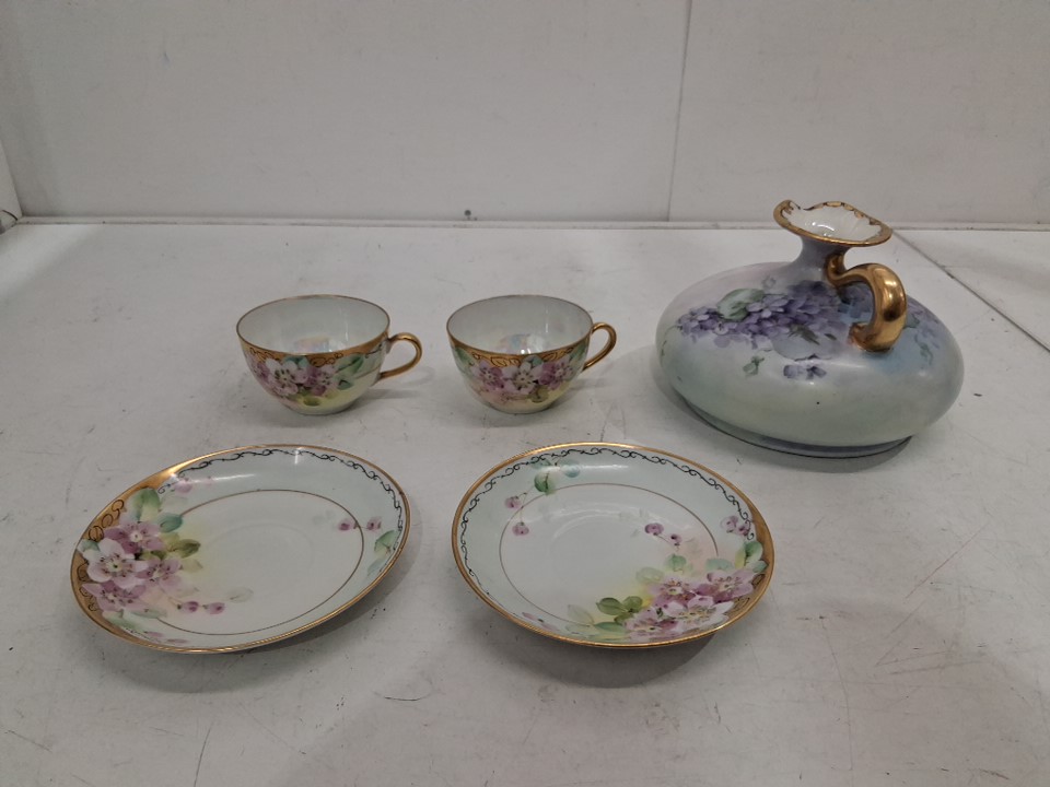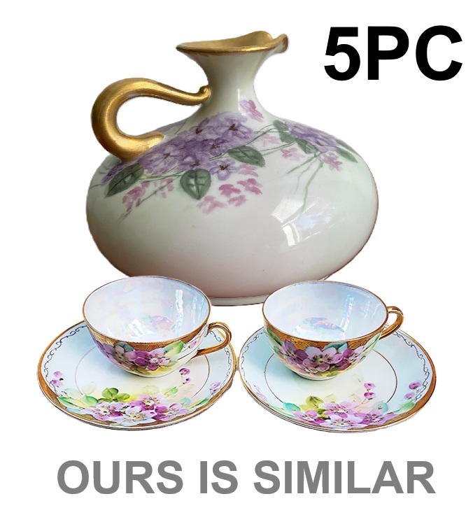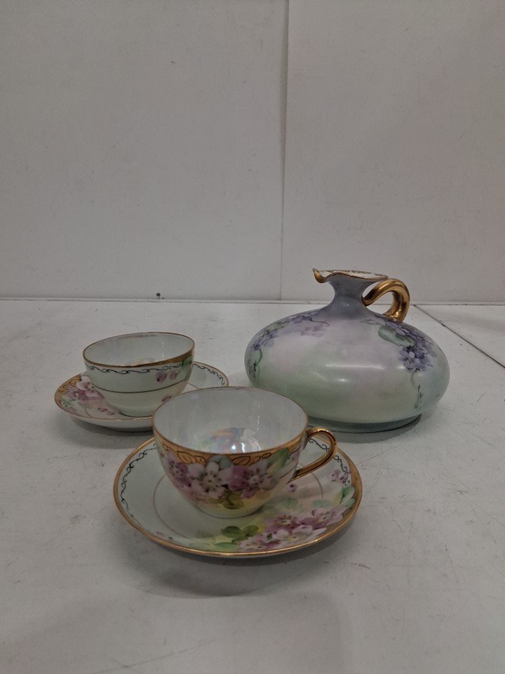 5PC Vintage Porcelain Pitcher Set with Cups & Saucers - White/Multicolor