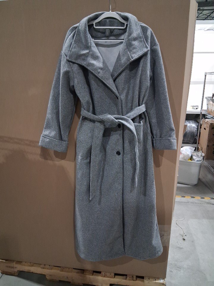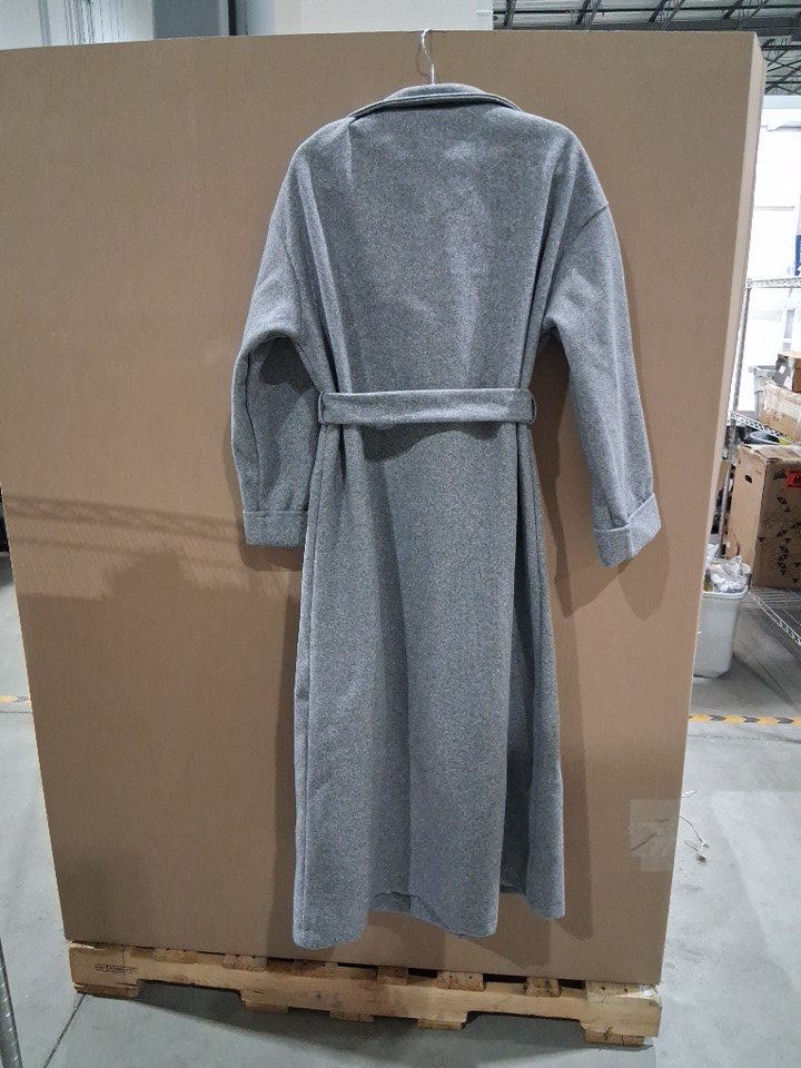 woman's shein infinite styles trench style wool mid calf length coat- size medium- grey
