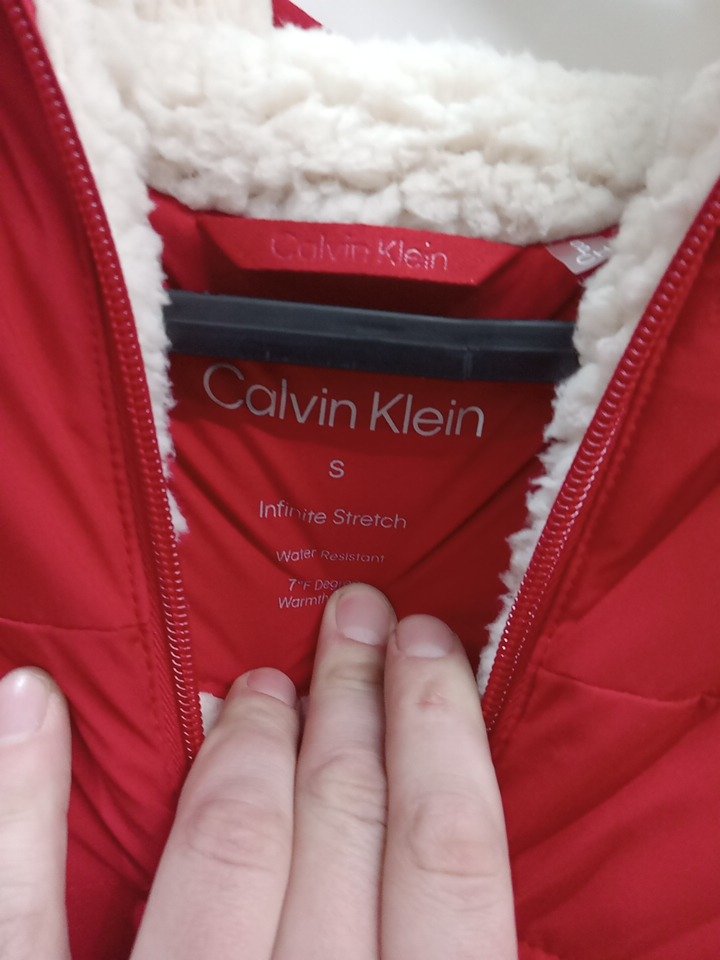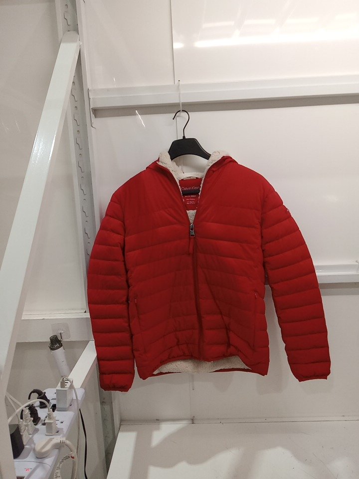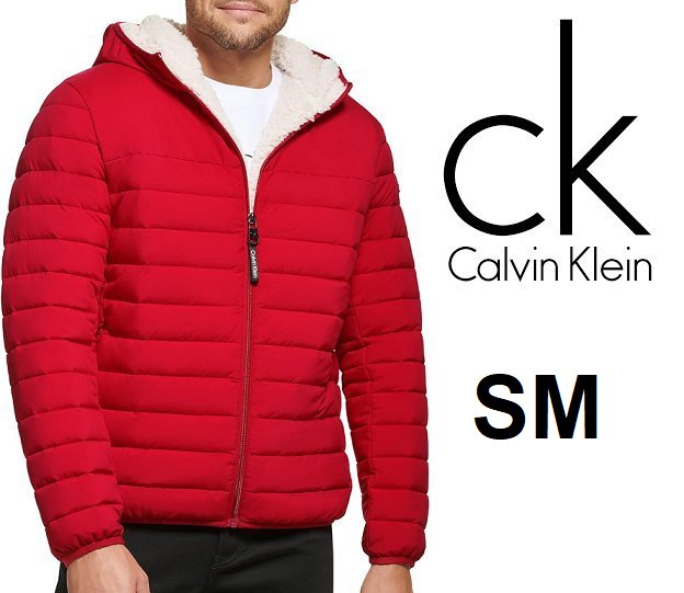 MENS CALVIN KLEIN HOODED SHERPA LINED QUILTED DOWN JACKET - small - RED (STYLE: CM155780)