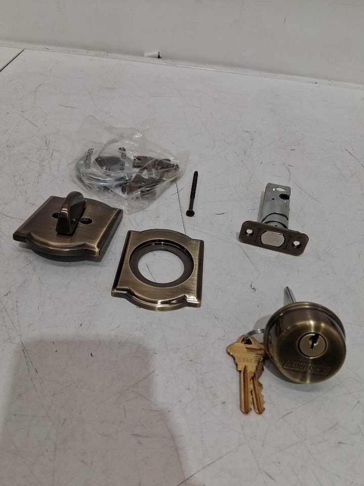 SCHLAGE camelot SINGLE CYLINDER DEADBOLT - ANTIQUE BRASS - (MODEL: B60N cam 609)