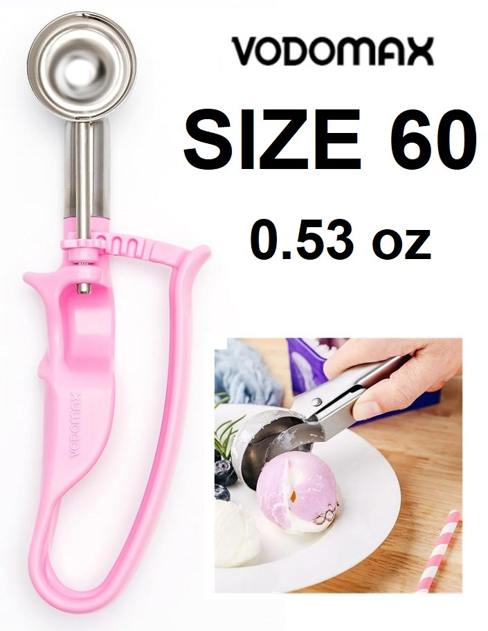 vodomax commercial stainless steel food disher scoop - size 60 - 0.53 oz - pink