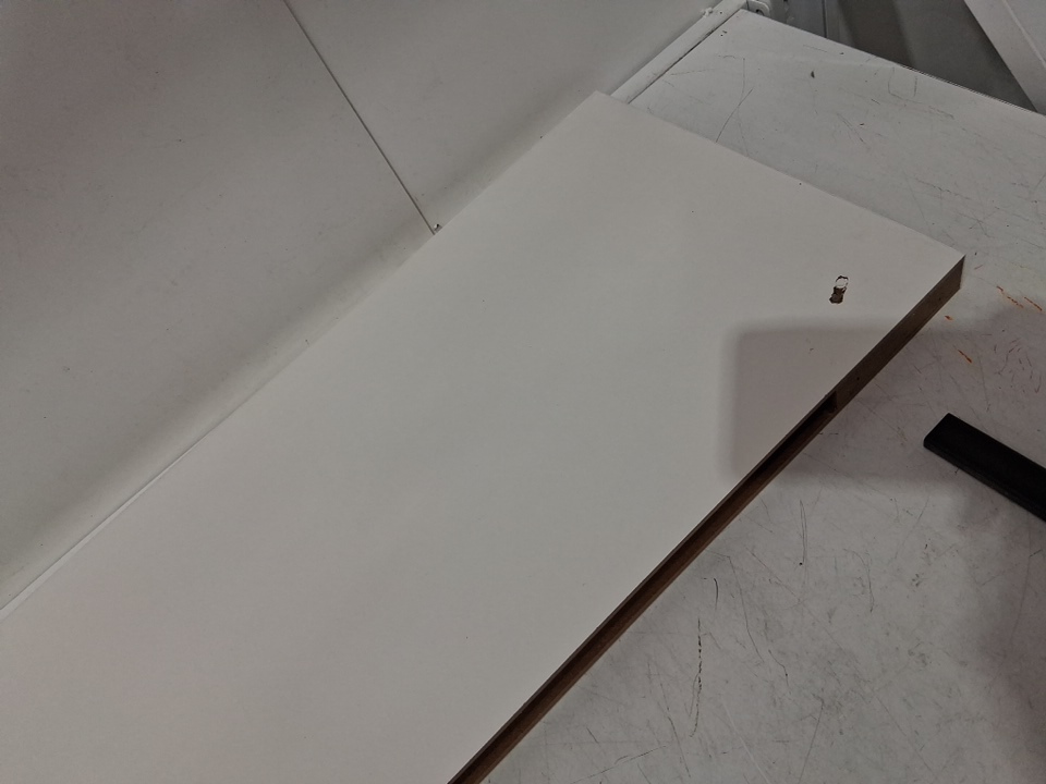 it is damaged from corners and has a mark on center of it, missing hardware